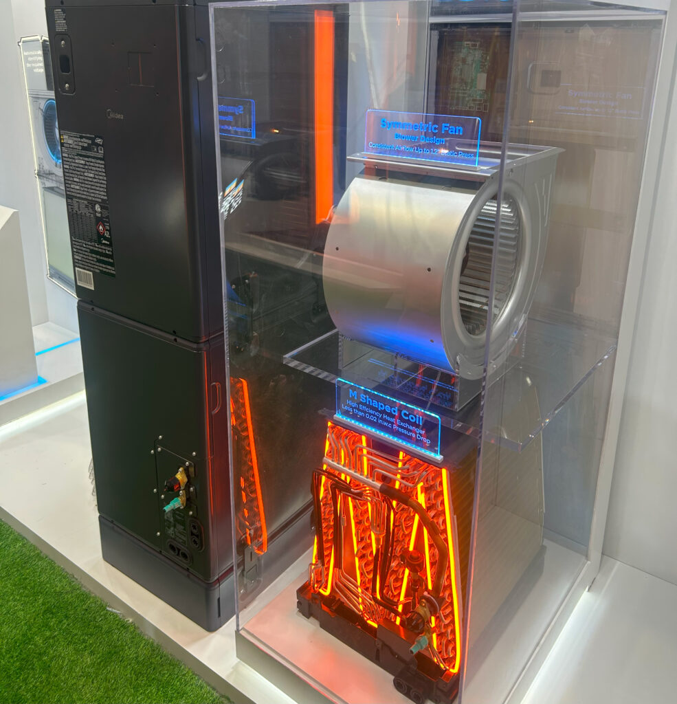 Midea also introduced an air handler solution called the Air Cube. This type of air handler can be configured in multiple ways, making it easier for contractors to overcome installation obstacles when they need to move large volumes of air from a heat pump throughout a home. The air handler also features an M-coil that is more efficient than conventional A-coils and can act as an additional source of heat when needed in cold climates.